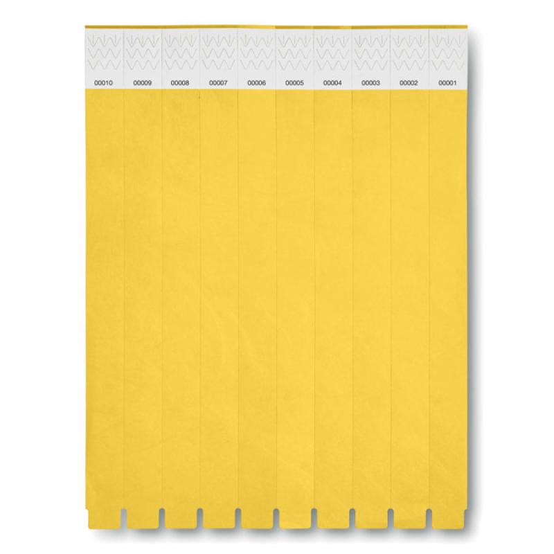 Zestaw 10 opasek festiwalowych na rękę DuPont ™ Tyvek®, szerokość 19mm. Każda posiada indywidualną numerację.