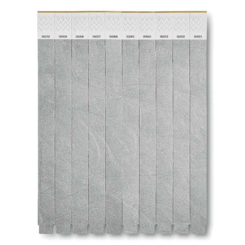 Zestaw 10 opasek festiwalowych na rękę DuPont ™ Tyvek®, szerokość 19mm. Każda posiada indywidualną numerację.