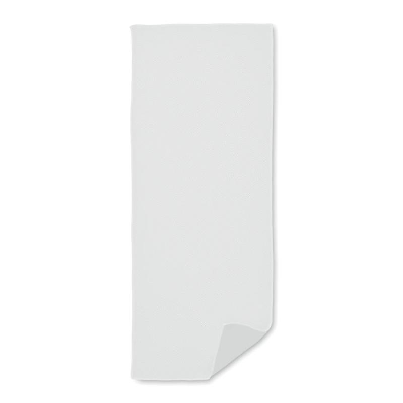 Sportowy ręcznik, świetnie absorbujący wodę. Skład: 55% poliamid i 45% mikrofibra.