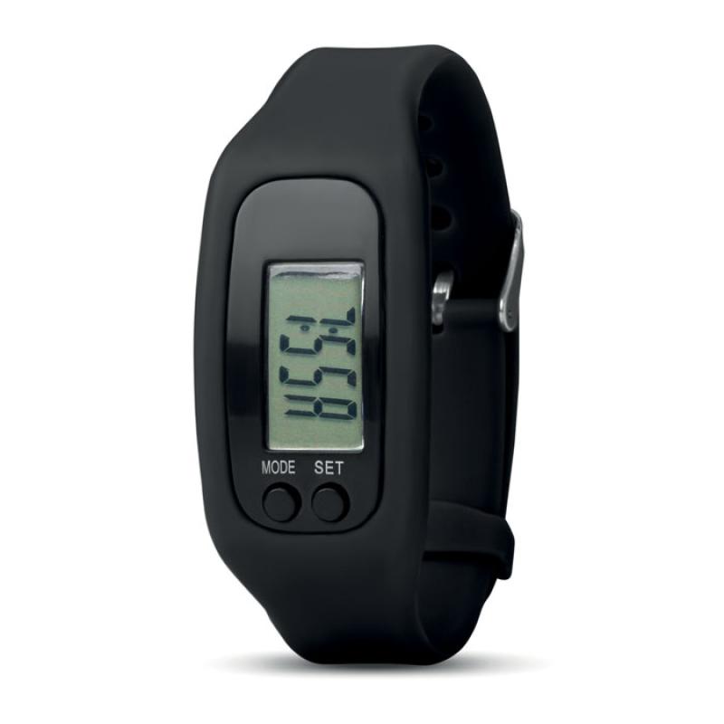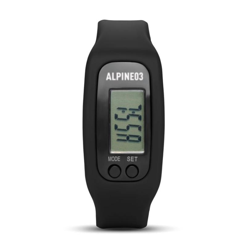 Krokomierz z paskiem. Zawiera licznik kroków, dystansu, czasu oraz spalonych kalorii. W zestawie 1 bateria AG10.
