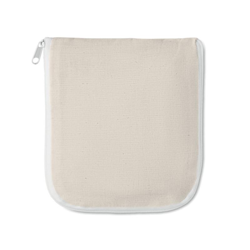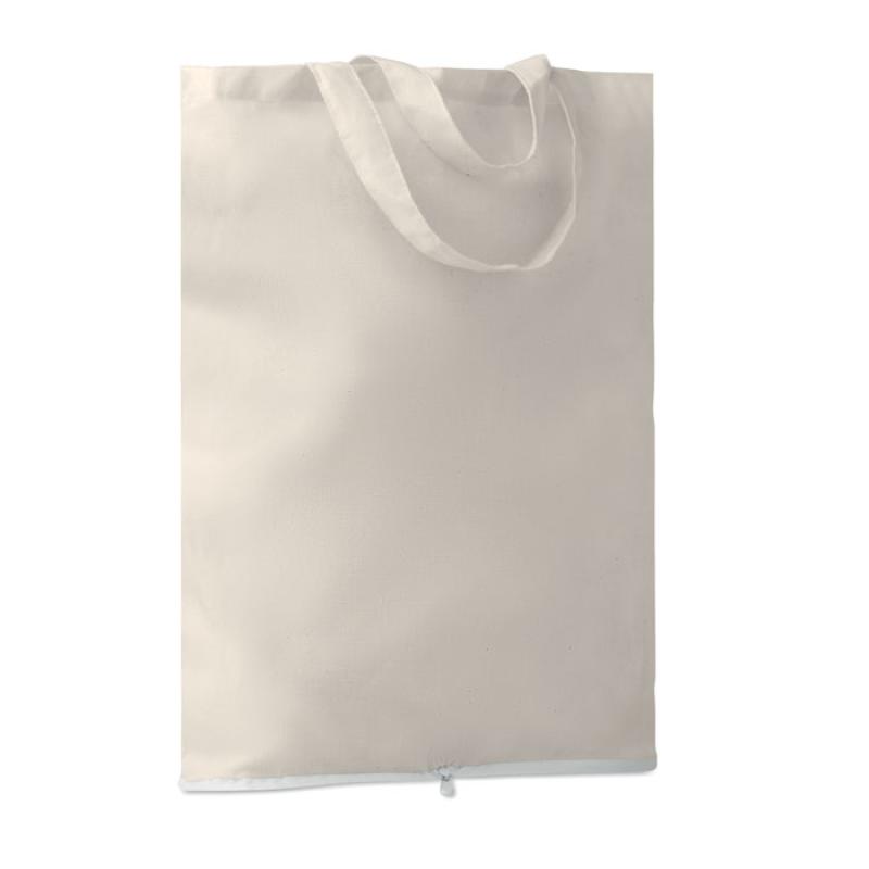 Składana torba na zakupy z krótkimi uchwytami, wykonana z bawełny 100 g/m². Dostarczamy niezłożony produkt.