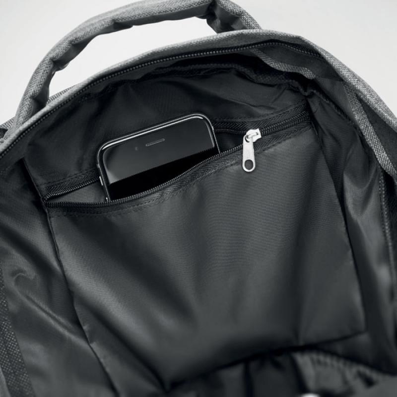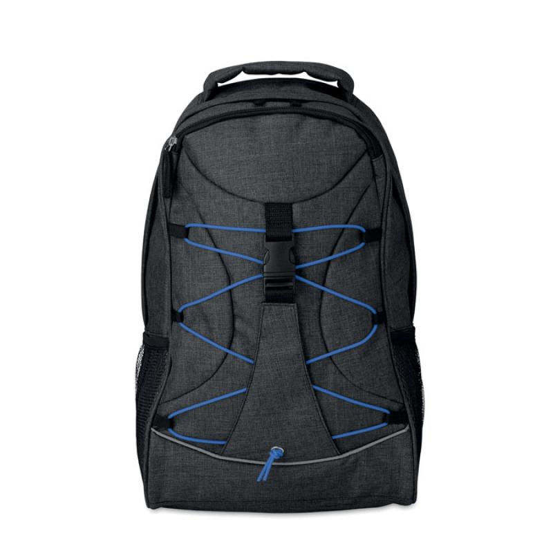 Plecak wykonany z 2-kolorowego poliestru 600D z kontrastującym kolorowym sznurkiem świecącym w ciemności. Siatkowe kieszenie po obu stronach.