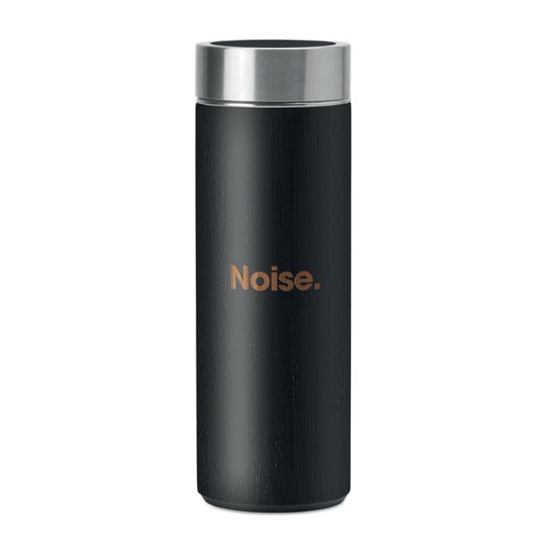 Termos z podwójnymi ściankami, stal nierdzewna z bambusową obudową, 400 ml, z dodatkowym zaparzaczem do herbaty. Ponieważ bambus jest materiałem naturalnym, kolory poszczególnych produktów mogą się różnić. Bambus jest produktem naturalnym, dlatego mogą wystąpić nieznaczne różnice w kolorze, wzorze i rozmiarze. FSC®-certified | FSC 100%, N5.7, FSC-C213206