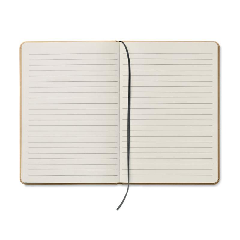 Notatnik A5 z twardą okładką z kartonu pochodzącego z recyklingu. Oprawiony w pudełko. 160 stron w linie (80 kartek). Elastyczny pasek zamykający, zakładka ze wstążki. FSC®-certified | FSC MIX CREDIT, P7.1, FSC-C213206