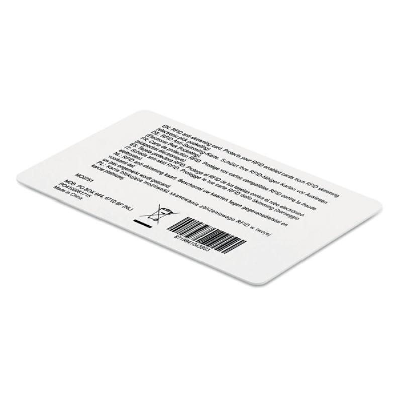 Karta RFID. Zastosowanie pola elektromagnetycznego sprawia, że wszystkie karty 13,56 mHz (karty do pociągu, autobusu, karty bankowe lub kredytowe) są chronione przed skanowaniem w odległości do 2-3 cm. (0,9 mm).
