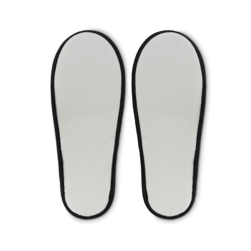 Para poliestrowych kapci hotelowych w etui z włókniny. Rozmiar EUR 43 - 44.