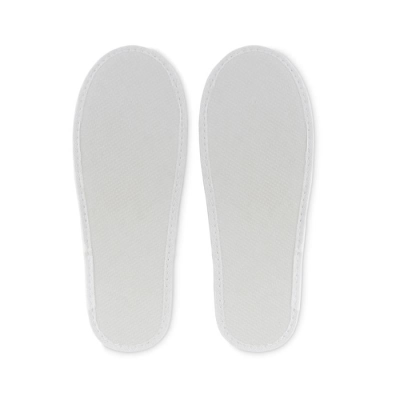 Para poliestrowych kapci hotelowych w etui z włókniny. Rozmiar EUR 43 - 44.