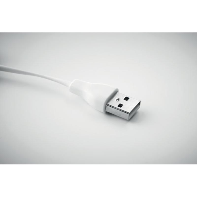 Brelok bambusowy z kablami do ładowania z USB-A na Micro-B (2 w 1) i typ C. Bambus jest produktem naturalnym, dlatego mogą wystąpić nieznaczne różnice w kolorze, wzorze i rozmiarze.