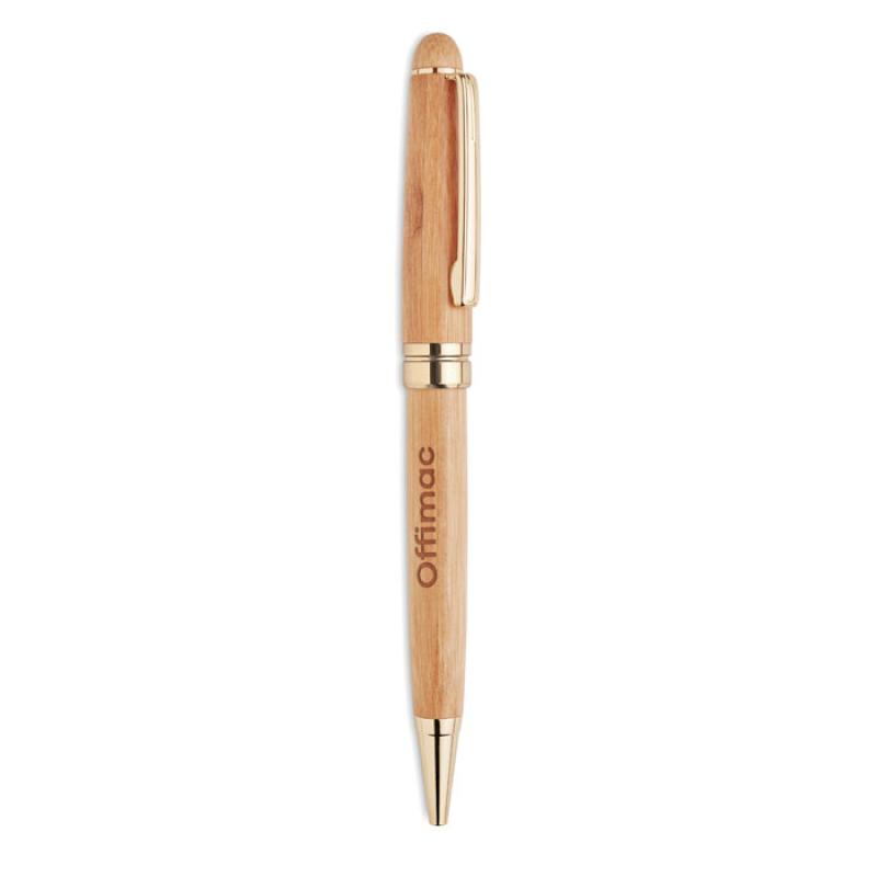 Zestaw upominkowy z obrotowym długopisem w bambusowym pudełku. Niebieski atrament. Bambus jest produktem naturalnym, mogą występować niewielkie różnice w kolorze i rozmiarze.