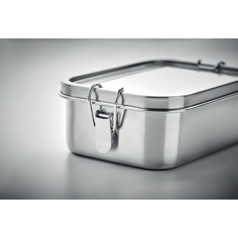 Lunchbox ze stali nierdzewnej z mocnymi bocznymi klamrami zapewniającymi szczelne zamknięcie. Pojemność 750 ml