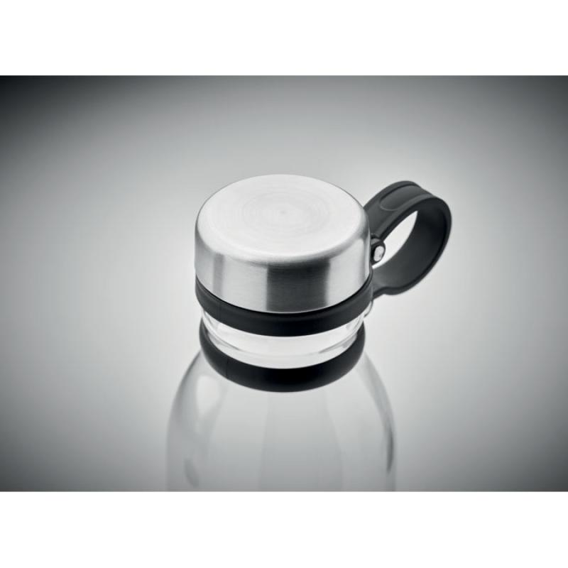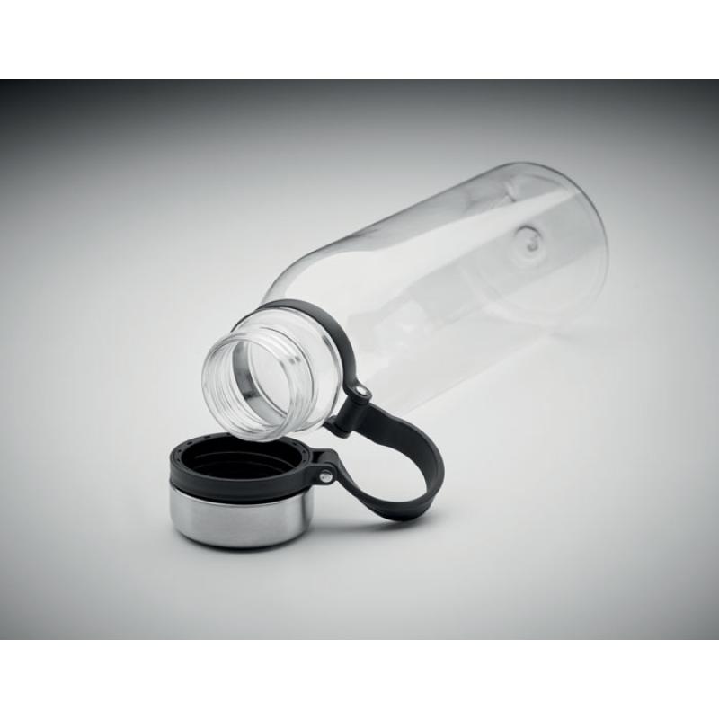 Dwuścienna butelka z RPET z silikonowym uchwytem do łatwego przenoszenia oraz zakrętką ze stali nierdzewnej. Bez BPA. Szczelna. Pojemność: 780 ml. Nie nadaje się do napojów gazowanych.