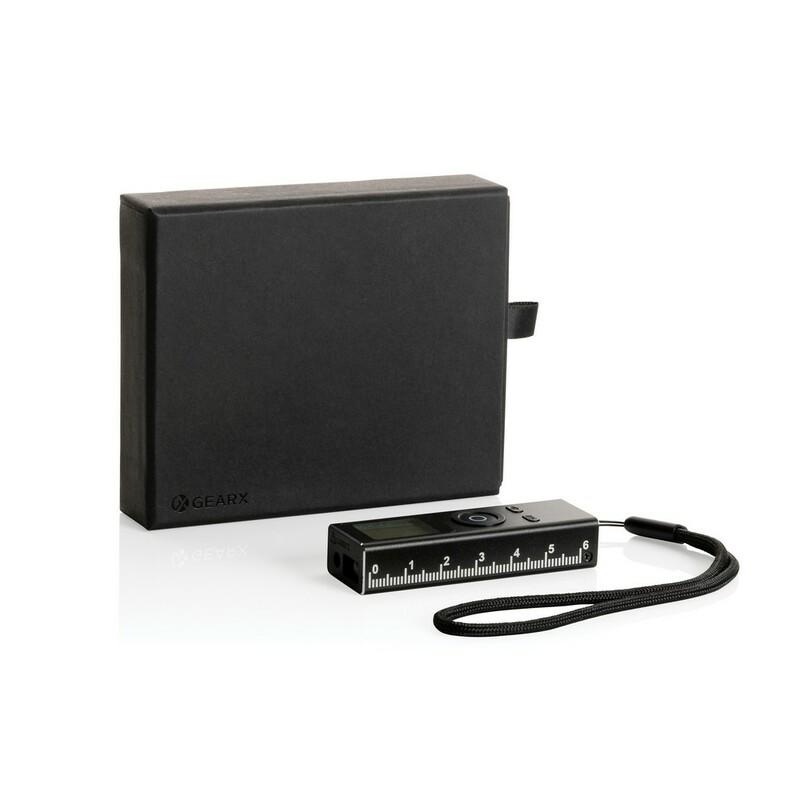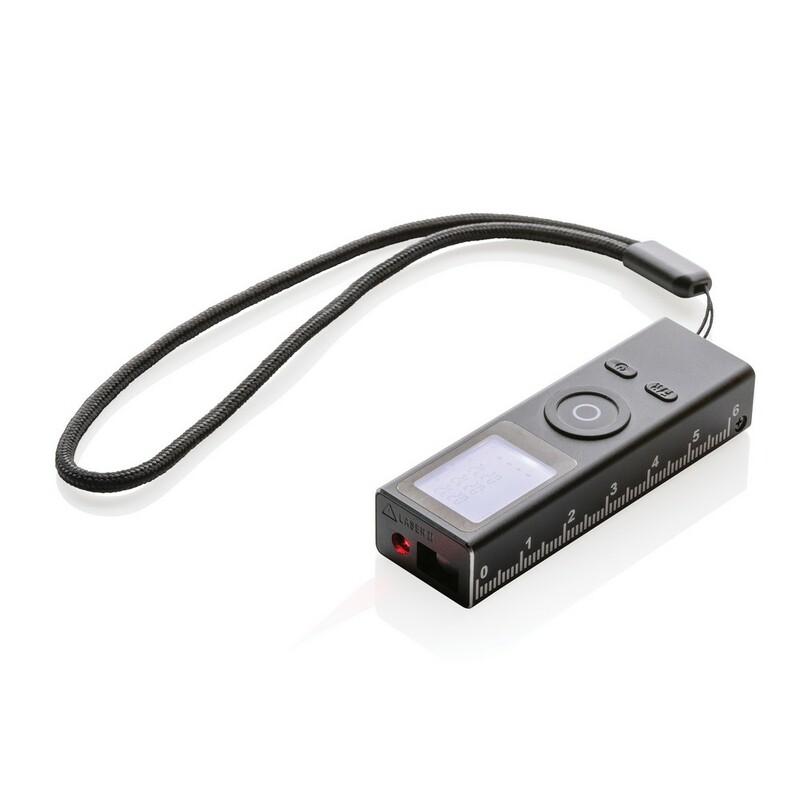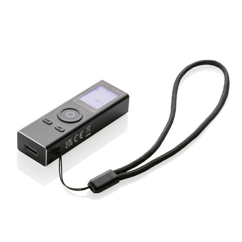 Dalmierz laserowy, zasięg pomiaru do 30 m, wykonany z aluminium z recyklingu, całkowita zawartość materiałów z recyklingu obliczona na podstawie wagi całkowitej przedmiotu: 22%, wbudowana bateria o pojemności 250 mAh, ładowanie przez USB, laser klasy 2, mierzy odległość, powierzchnię, objętość oraz przekątne, wejście USB typu C, ślad węglowy produktu: 0,63 kg CO2