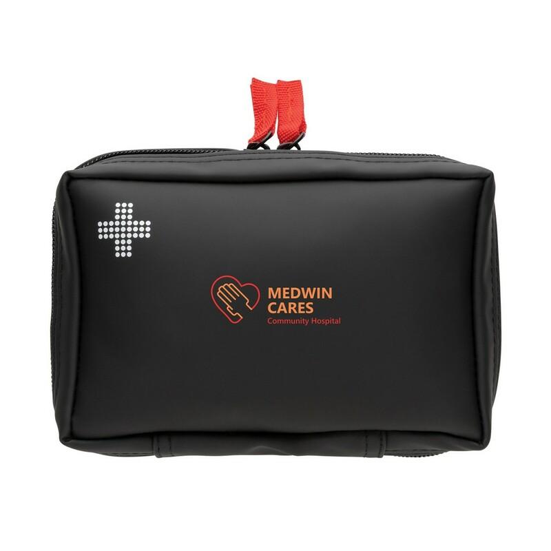 Apteczka 24 el., w pokrowcu z materiałów z recyklingu na zamek błyskawiczny, spełnia wymagania normy EN ISO 13485:2016, 93/42/EWG i UE (2017/745), całkowita zawartość materiałów z recyklingu obliczona na podstawie wagi całkowitej produktu: 46%