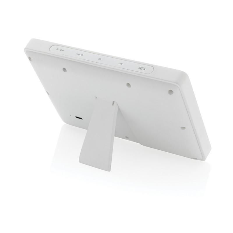 Duża stacja pogodowa, wykonana z certyfikowanego ABS z recyklingu oraz bambusa z certyfikatem FSC®, zawartość materiałów z recyklingu obliczona na podstawie wagi całkowitej przedmiotu: 65%, funkcje: temperatura, data, czas, wilgotnośc powietrza, baterie w komplecie, w pudełku kraftowym z certyfikatem FSC® mix