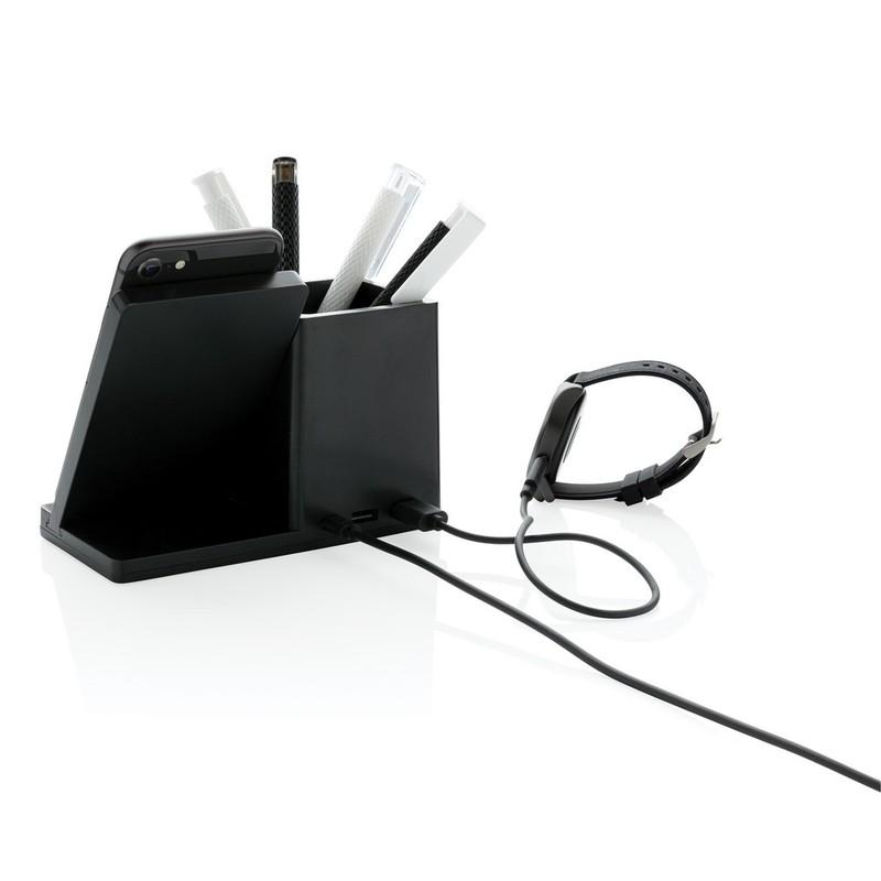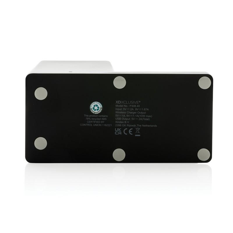 wykonany z bambusa z certyfikatem FSC®, bezprzewodowe ładowanie jest kompatybilne ze wszystkimi urządzeniami posiadającymi możliwość ładowania indukcyjnego, funkcja szybkiego ładowania, wejście USB typu C 5V/2A, 9V/2A, wyjście bezprzewodowe 5V/1A, 9V/1,1A, kabel USB typu C 120 cm wykonany z TPE z recyklingu w komplecie, w pudełku kraftowym z certyfikatem FSC® mix, nie zawiera PVC, zarejestrowany wzór®