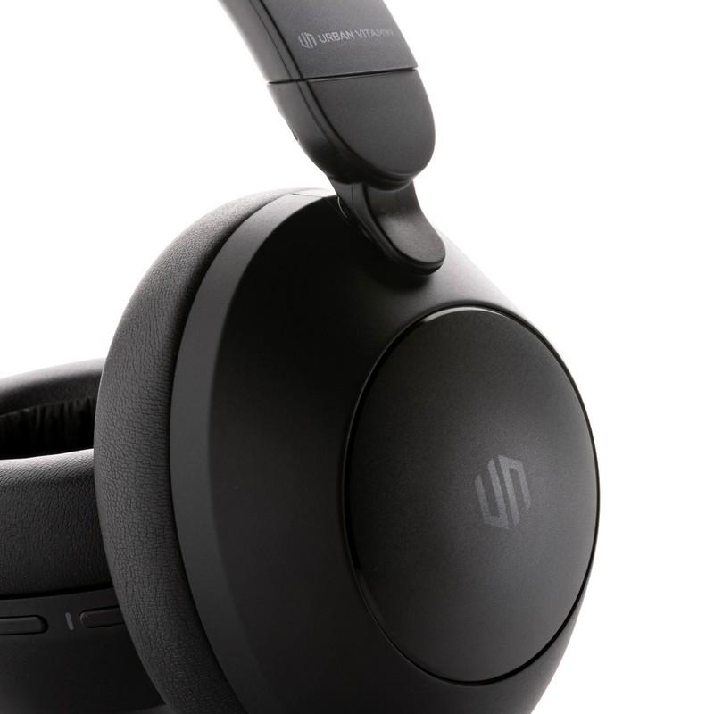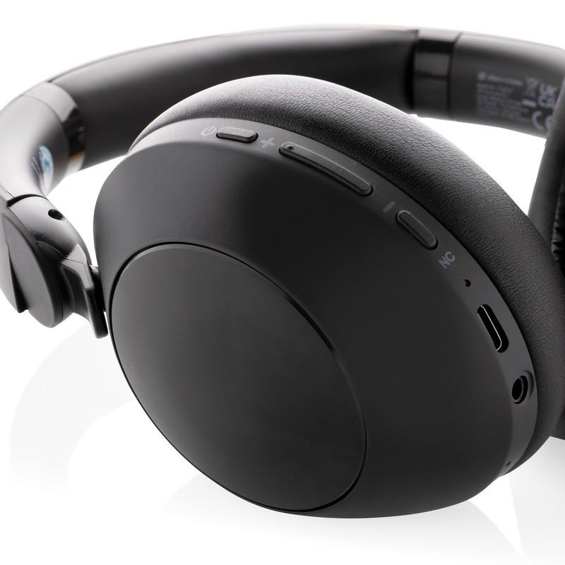 Nauszne słuchawki bezprzewodowe z systemem aktywnej redukcji szumów (ANC), poziom redukcji szumów do 25 dB, składane, wbudowany mikrofon, funkcja odbierania połączeń, komfortowe nauszniki, czas odtwarzania na jednym ładowaniu do 50 godzin, wykonane z ABS z recyklingu z certyfikatem RCS, całkowita zawartość materiału z recyklingu obliczona w oparciu o wagę całkowitą przedmiotu: 58%, nie zawiera PVC