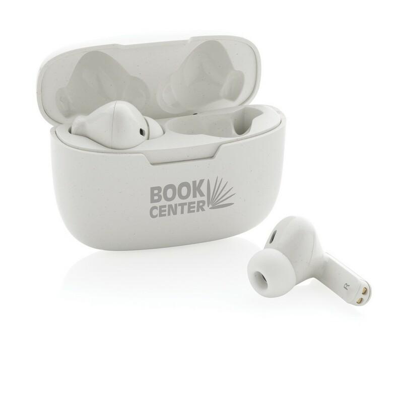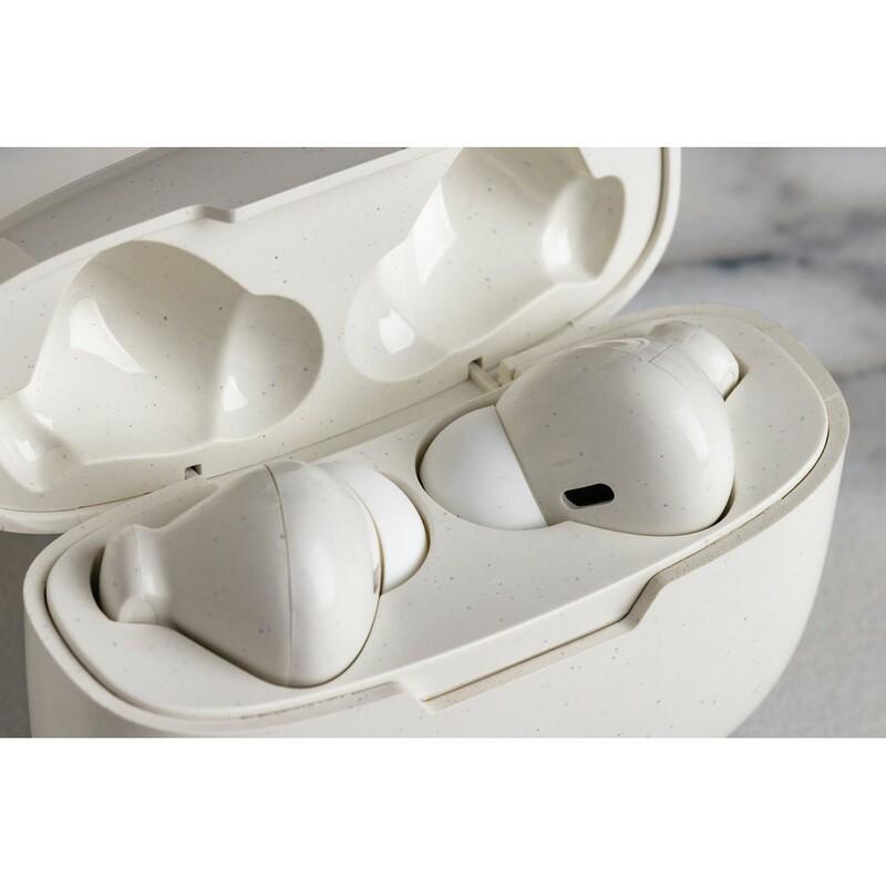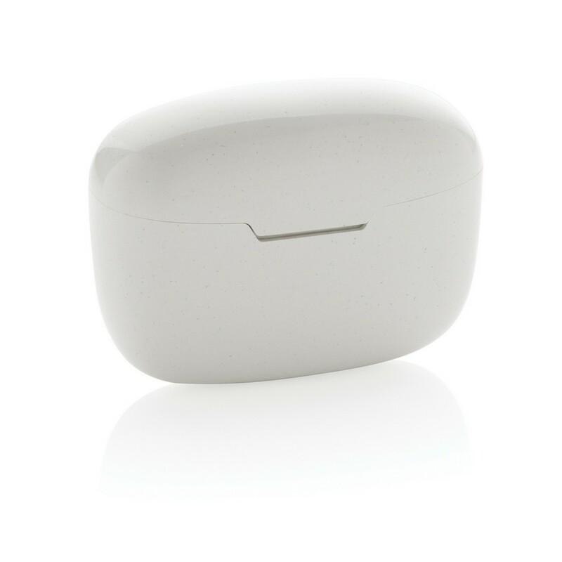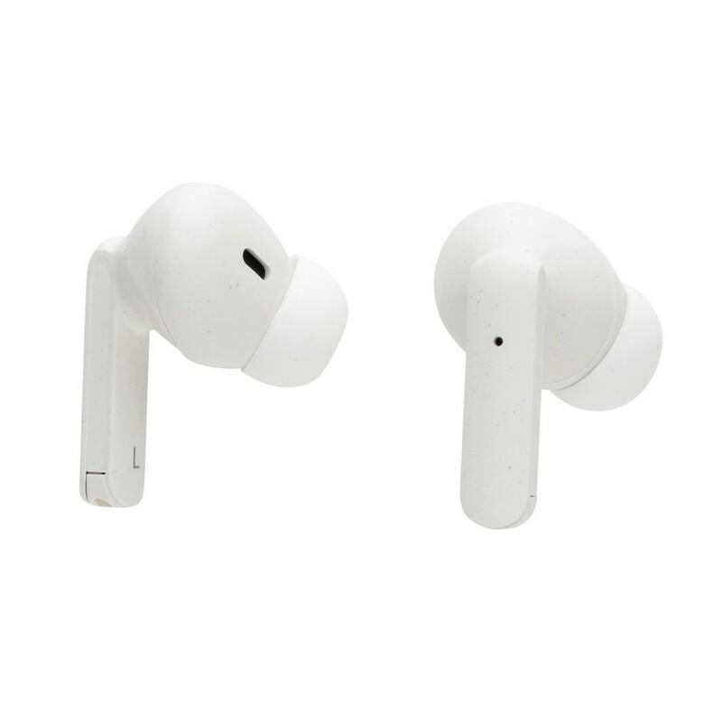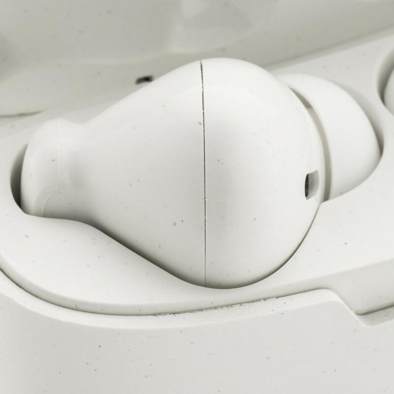 Bezprzewodowe słuchawki duszne, BT 5.0, wykonane z ABS z recyklingu z certyfikatem RCS, całkowita zawartość materiałów z recyklingu obliczona na podstawie wagi całkwitej produktu: 56%, wbudowany mikrofon, funkcja odbierania połączeń stereo, przycisk dotykowy, etui z akumulatorem 300 mAh pełniące funkcję stacji ładującej w komplecie, akumulator słuchawek o pojemności 35 mAh umożliwia odtwarzanie muzyki na średnim poziomie głośności do 3 godzin, ponowne naładowanie za pomocą etui w 1,5 godziny, zasięg do 10 m, 3 rozmiary nakładek dousznych w komplecie, kabel micro USB z TPE bez dodatku PVC w komplecie