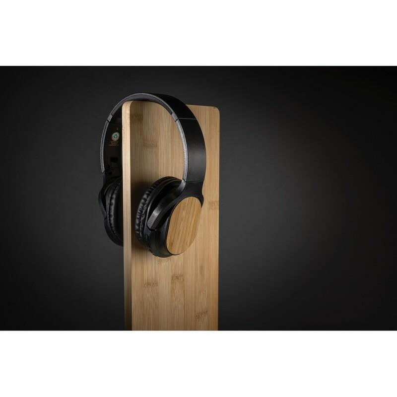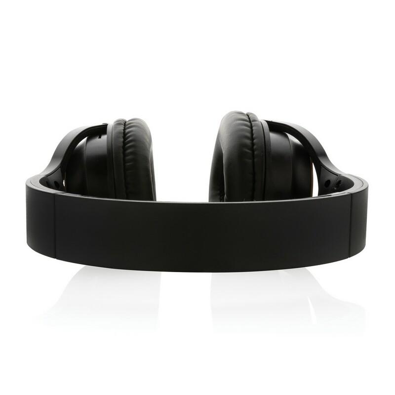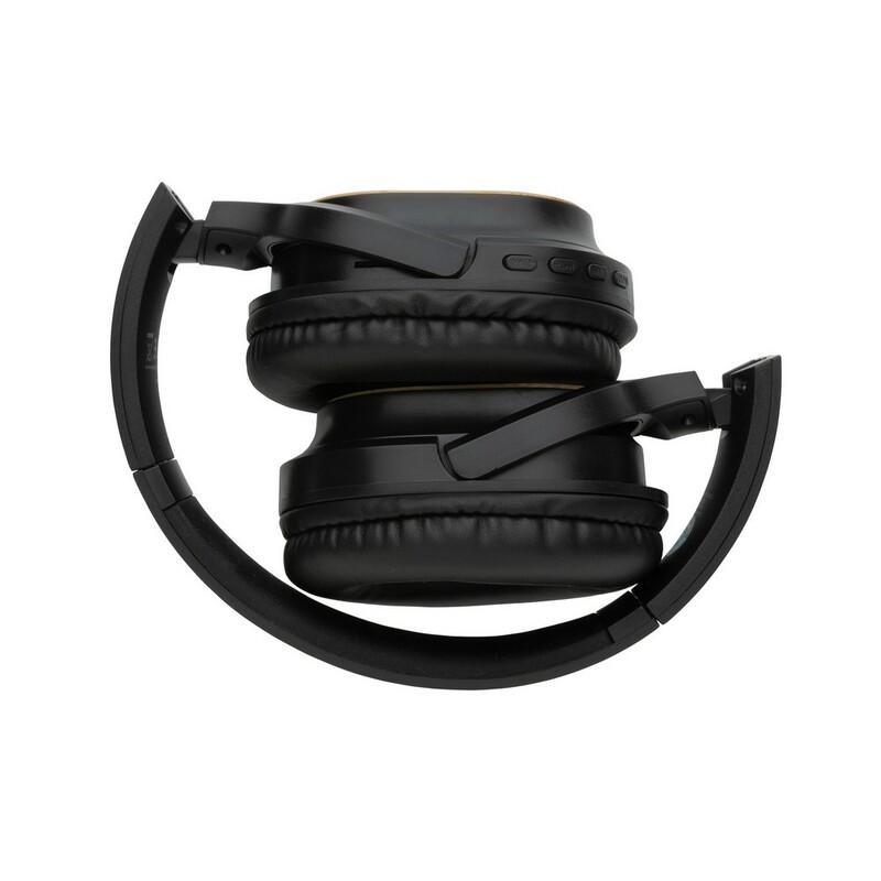 Nauszne słuchawki bezprzewodowe BT 5.1, wykonane z materiałów z recyklingu z certyfikatem RCS, całkowita zawartość materiałów z recyklingu 66% obliczona na podstawie wagi całkowitej, detale wykonane z bambusa z certyfikatem FSC®, wbudowany mikrofon, funkcja odbierania połączeń, wbudowany akumulator o pojemności 200 mAh umożliwia odtwarzanie muzyki do 5 godzin, ponowne ładowanie w 2 godziny, kabel z TPE z recyklingu w komplecie, w kraftowym pudełku z certyfikatem FSC® mix, nie zawiera PVC