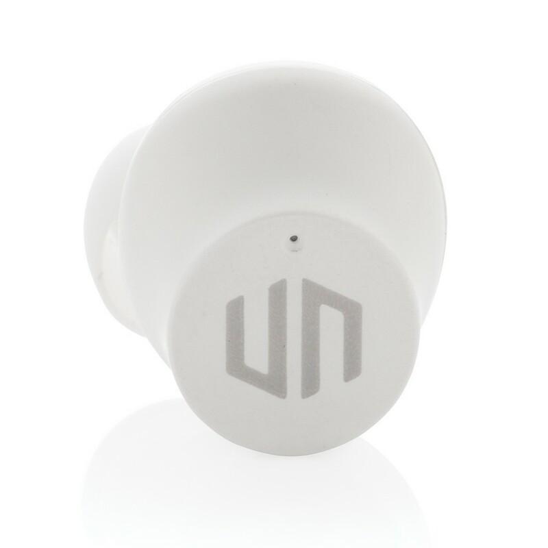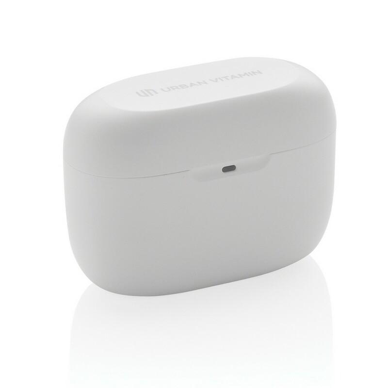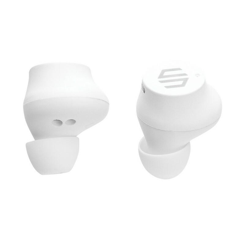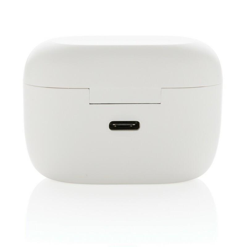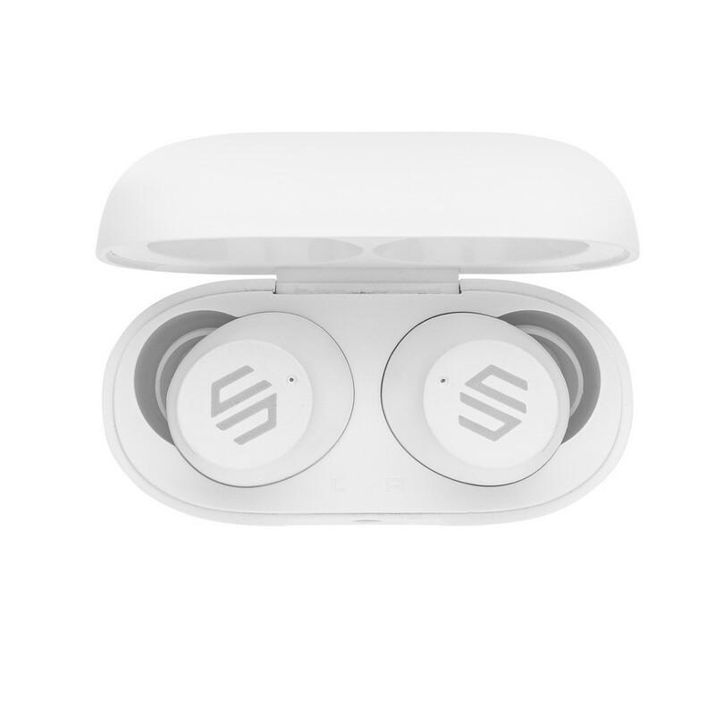 Bezprzewodowe słuchawki douszne, mocny i głęboki dźwięk, poziom redukcji szumów do 25 dB, wodoodporne IPX5, dotykowy panel sterowania, wbudowany mikrofon, funkcja odbierania połączeń, do 5 godzin odtwarzania na jednym ładowaniu, etui ładujące zapewnia 18 godzin odtwarzania, nie zawiera PVC, opakowanie nie zawiera plastiku
