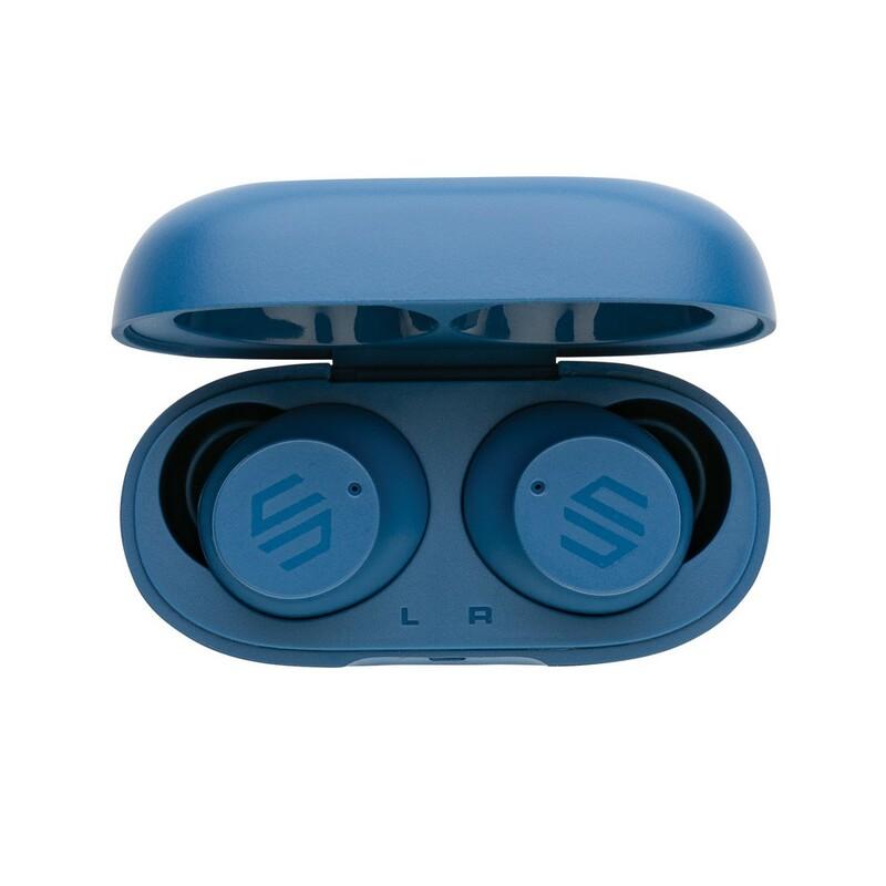 Bezprzewodowe słuchawki douszne, mocny i głęboki dźwięk, poziom redukcji szumów do 25 dB, wodoodporne IPX5, dotykowy panel sterowania, wbudowany mikrofon, funkcja odbierania połączeń, do 5 godzin odtwarzania na jednym ładowaniu, etui ładujące zapewnia 18 godzin odtwarzania, nie zawiera PVC, opakowanie nie zawiera plastiku