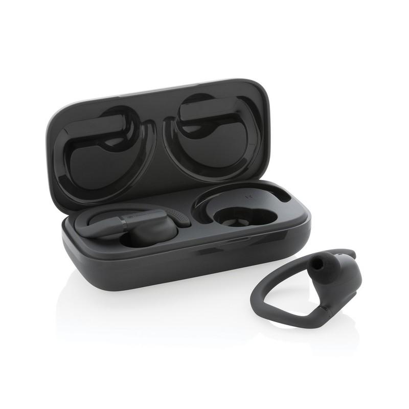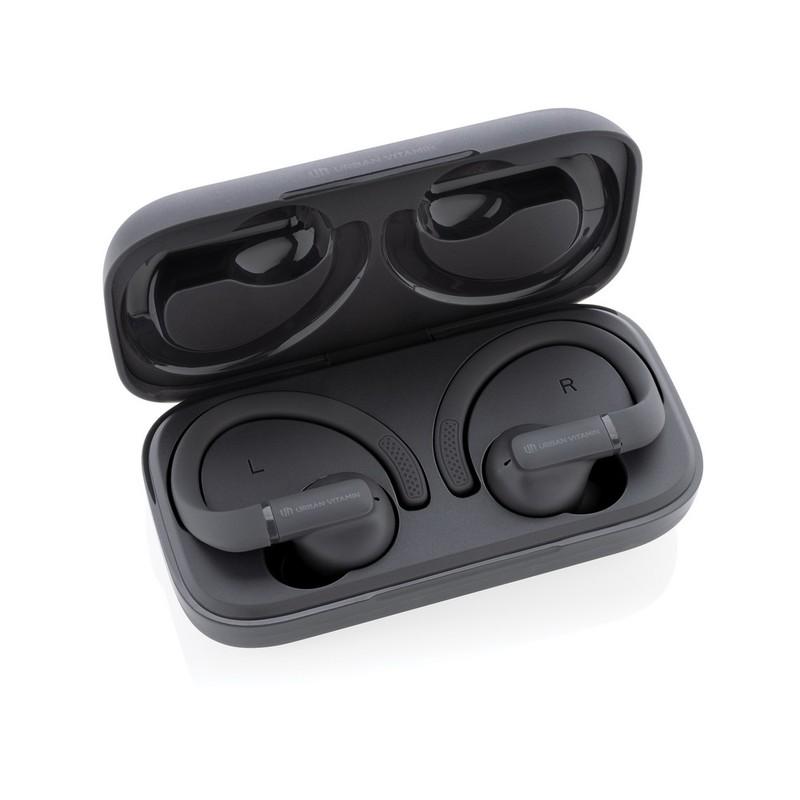 Bezprzewodowe słuchawki douszne, BT 5.3, wykonane z ABS oraz TPE z recyklingu z certyfikatem RCS, całkowita zawartość materiałów z recyklingu obliczone na podstawie wagi całkowitej przedmiotu: 55%, funkcja redukcji szumów otoczenia podczas rozmów (ENC), wodoodporne IPX5, dotykowy panel sterowania, do 8 godzin odtwarzania na jednym ładowaniu, etui ładujące 600 mAh pozwala na trzy pełne cykle ładowania słuchawek, nie zawiera PVC, opakowanie o zmniejszonej zawartości plastiku