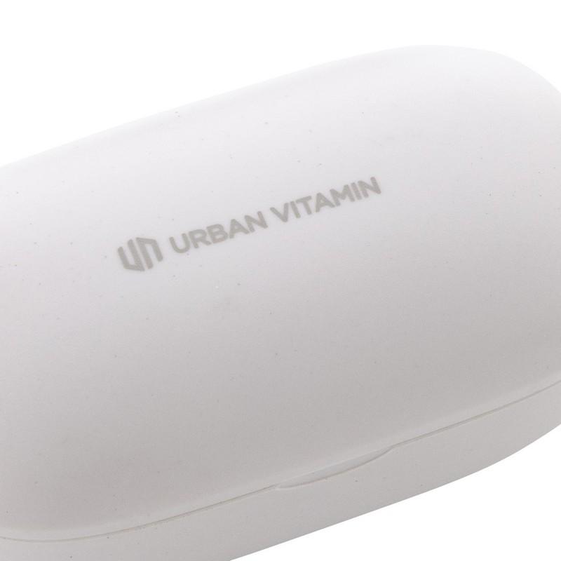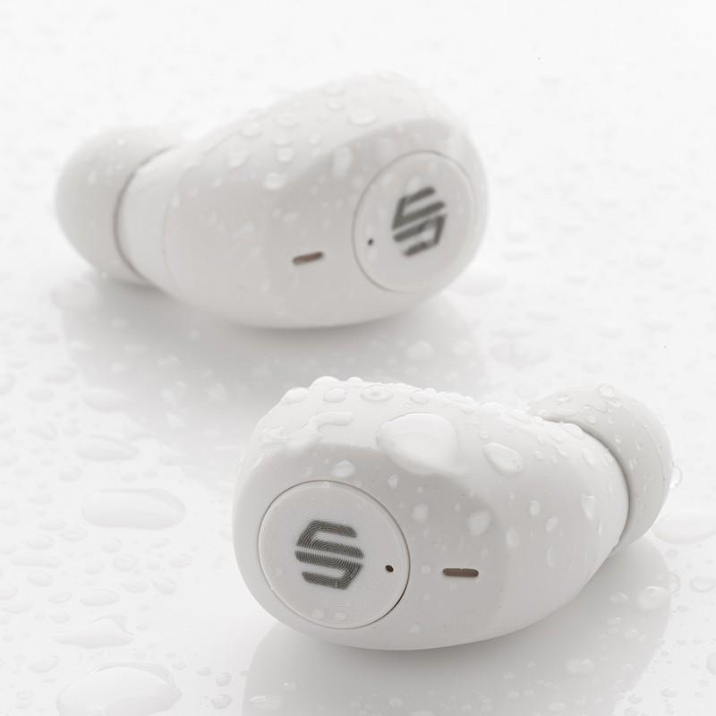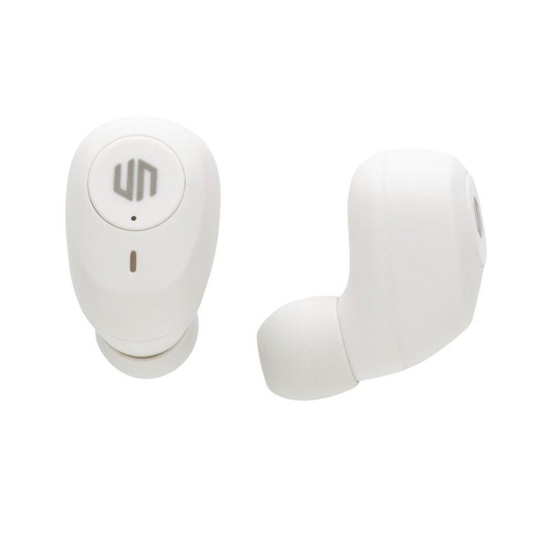 Bezprzewodowe słuchawki douszne, wykonane z ABS z recyklingu z certyfikatem RCS, całkowita zawartość materiałów z recyklingu obliczone na podstawie wagi całkowitej przedmiotu: 55%, funkcja redukcji szumów otoczenia podczas rozmów (ENC), wbudowane 2 mikrofony, funkcja odbierania połączeń, wodoodporne IPX4, dotykowy panel sterowania, do 6 godzin odtwarzania na jednym ładowaniu, etui ładujące zapewnia 20 godzin odtwarzania, nie zawiera PVC, opakowanie o zmniejszonej zawartości plastiku