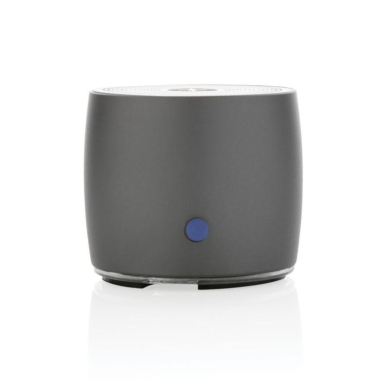 Głośnik bezprzewodowy 3W, BT 5.0, wykonany z aluminium z recyklingiem z certyfikatem RCS oraz ABS z recyklingu, całkowita zawartość materiałów z recyklingu obliczona na podstawie wagi całkowitej przedmiotu: 26%, wbudowany akumulator o pojemności 500 mAh pozwala na odtwarzanie muzyki do 4 godzin, ponowne ładowanie w 2 godziny, kabel USB typu C z TPE z recyklingu w komplecie, w pudełku z papieru kraftowego z certyfikatem FSC®