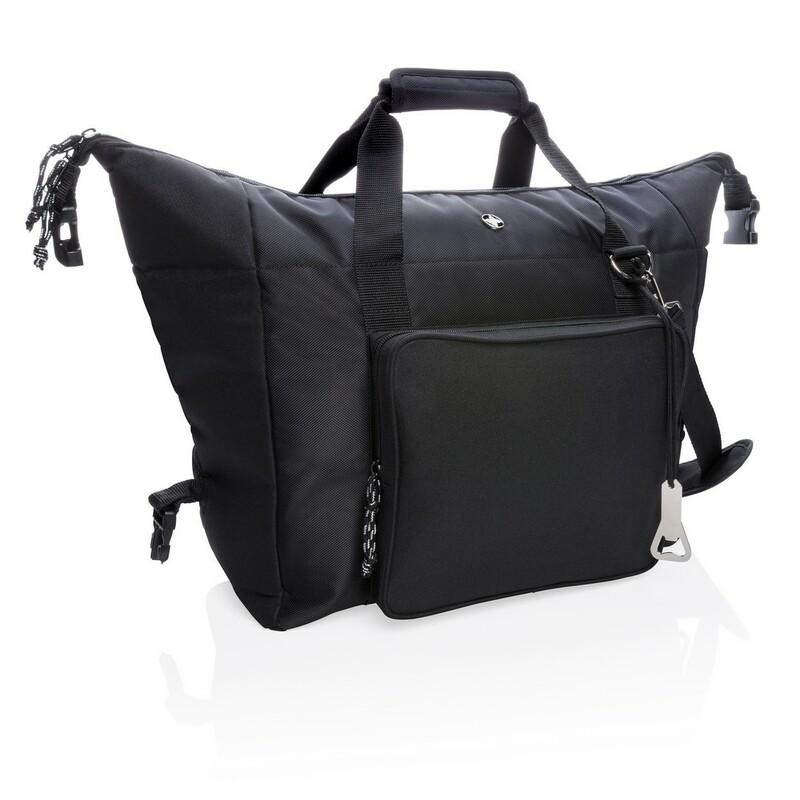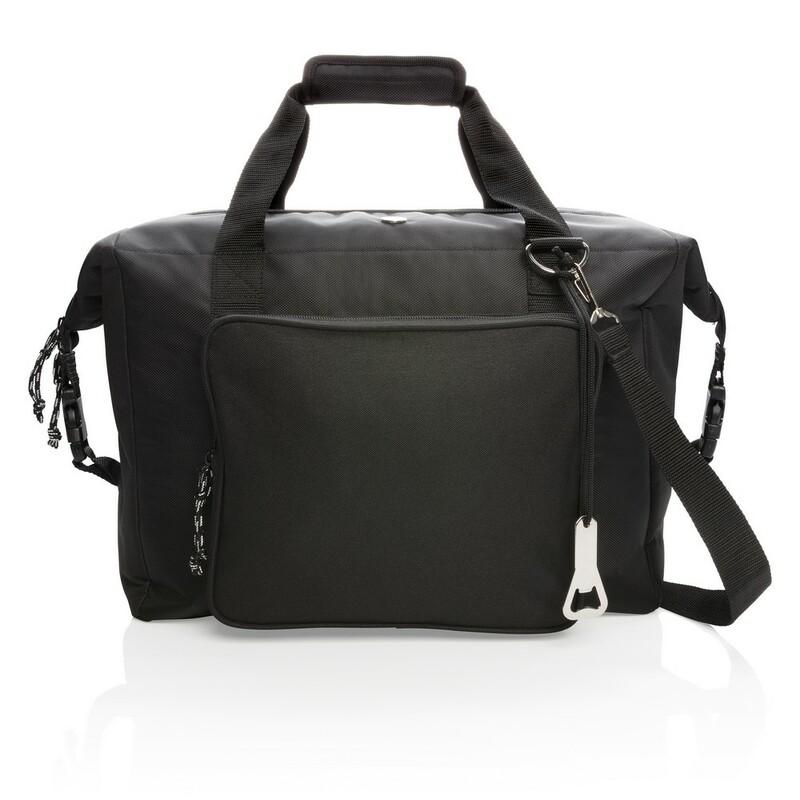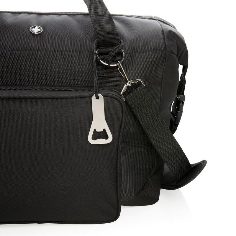 Torba termoizolacyjna Deluxe, wykonana z poliestru 1680D i 600D, izolacja PEVA, pojemność 40 l, duża przegroda główna zmieści do 52 puszek 0,33 l lub 10 butelek 1,5 l, przegroda główna i przednia kieszeń na zamek błyskawiczny, specjalna konstrukcja z zapięciem z boku umożliwia łatwe przekształcenie torby w worek, otwieracz do butelek w komplecie, podwójnie wzmocnione uchwyty, regulowany pasek na ramię z możliwością odpięcia