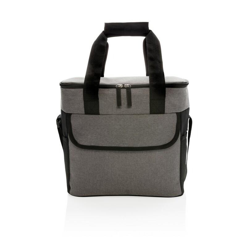 Duża torba termoizolacyjna, wykonana z poliestru 600D, przednia kieszeń, dwie boczne kieszenie siateczkowe, pojemność torby do 20 puszek 0,33l