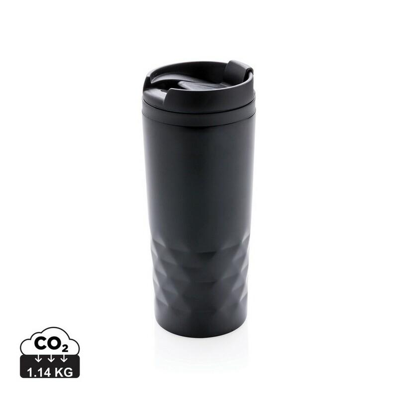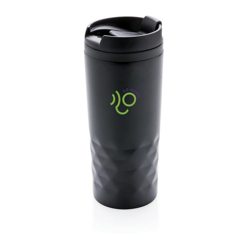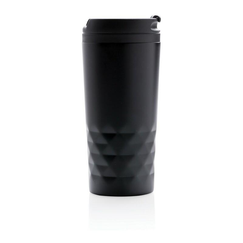 Geometryczny kubek podróżny 300 ml, plastikowe wnętrze, stal nierdzewna na zewnątrz, wyłącznie mycie ręczne