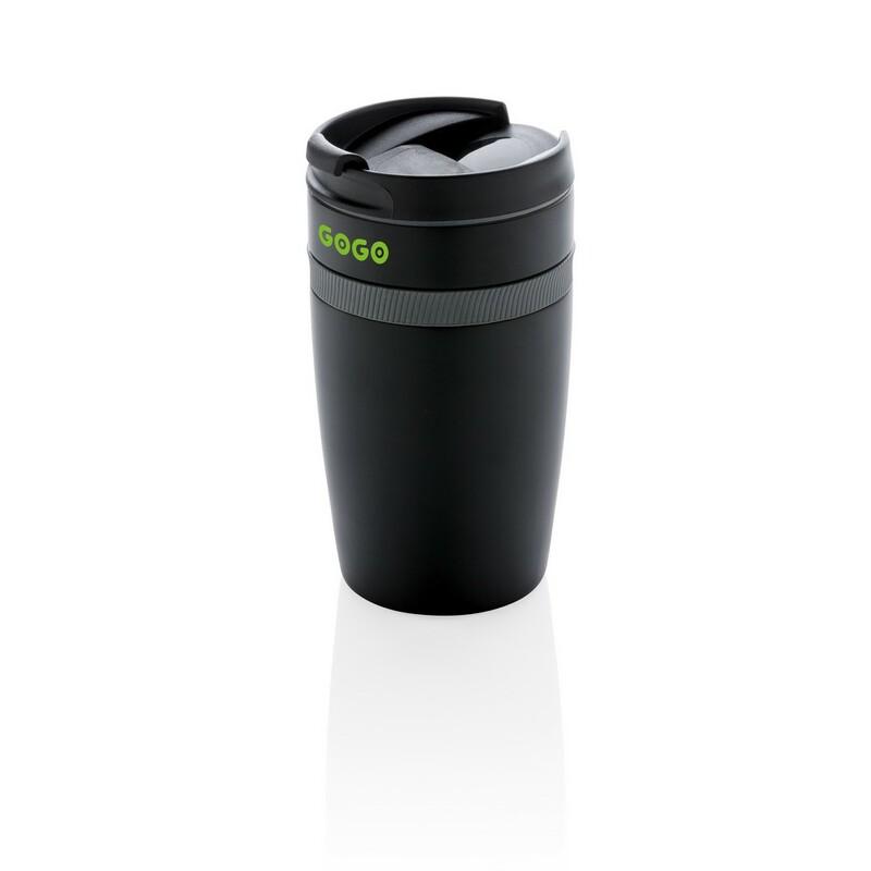 Kubek termiczny 280 ml, podwójne ścianki ze stali nierdzewnej z próżnią pomiędzy ściankami, utrzymuje temperaturę ciepłych napojów do 5 godzin oraz zimnych do 15, pasuje do większości ekspresów do kawy, wzór zastrzeżony®