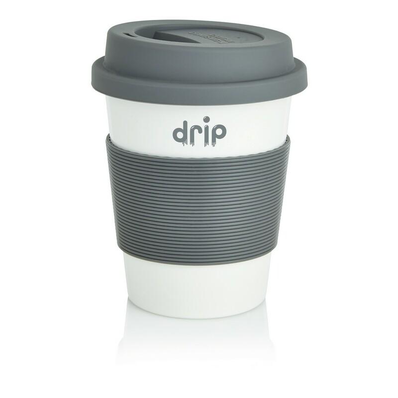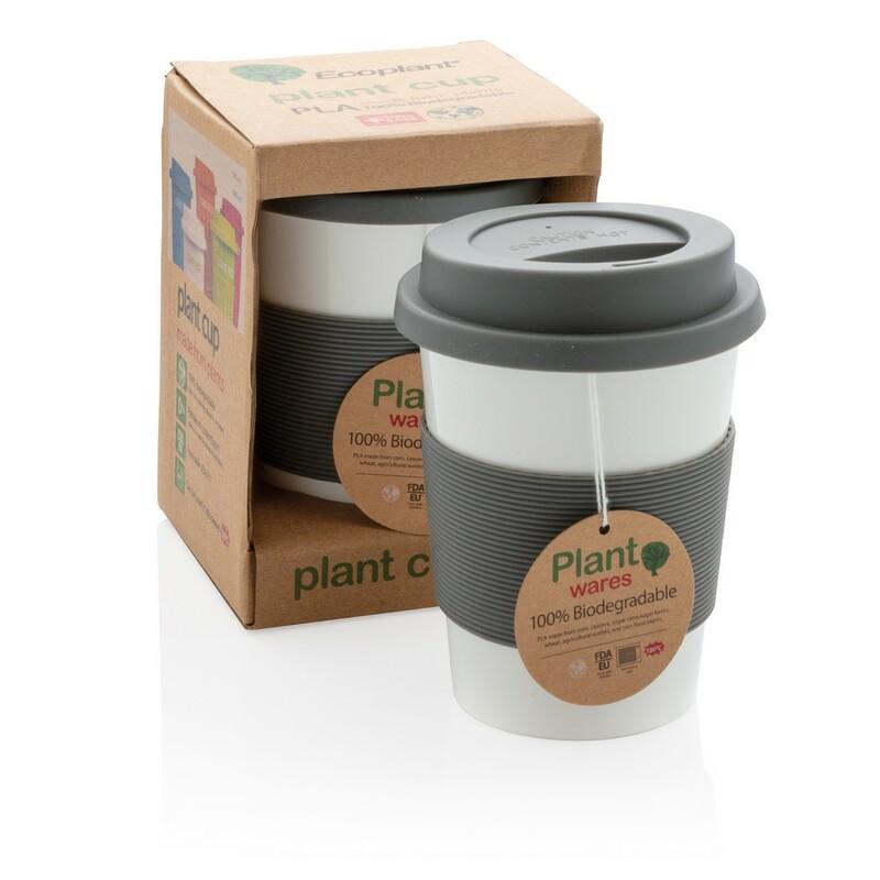 Ekologiczny kubek podróżny 350 ml, wykonany z PLA, silikonowe wieczko i uchwyt, można myć w zmywarce, nie zawiera BPA