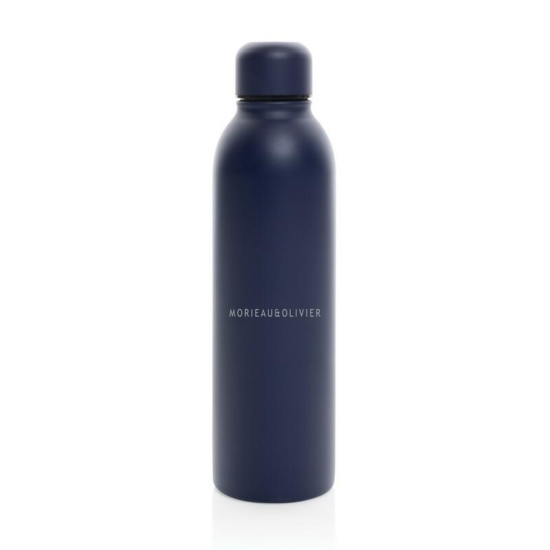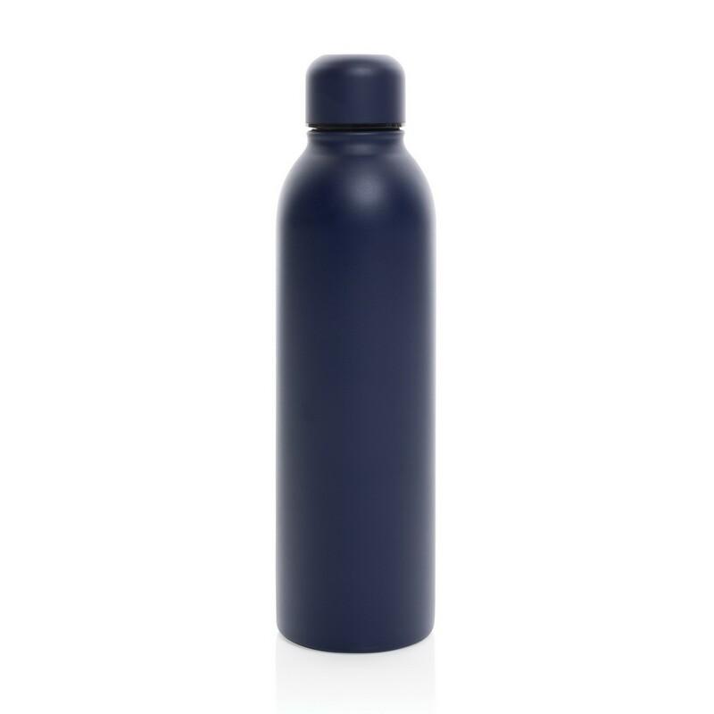Butelka termiczna 500 ml, podwójne ścianki z próżnią pomiędzy, utrzymuje temperaturę napojów ciepłych do 5 godzin oraz zimnych do 15 godzin, wykonana ze stali nierdzewnej z recyklingu z certyfikatem RSC (Recycled Claim Standard) który gwarantuje, że wykorzystane materiały pochodzą z recyklingu, całkowita zawartość materiału z recyklingu obliczona w oparciu o wagę całkowitą przedmiotu: 90%, w pudełku z papieru kraftowego z certyfikatem FSC® (Forest Stewardship Council), pasuje do większości uchwytów samochodowych, klasa termiczna: A