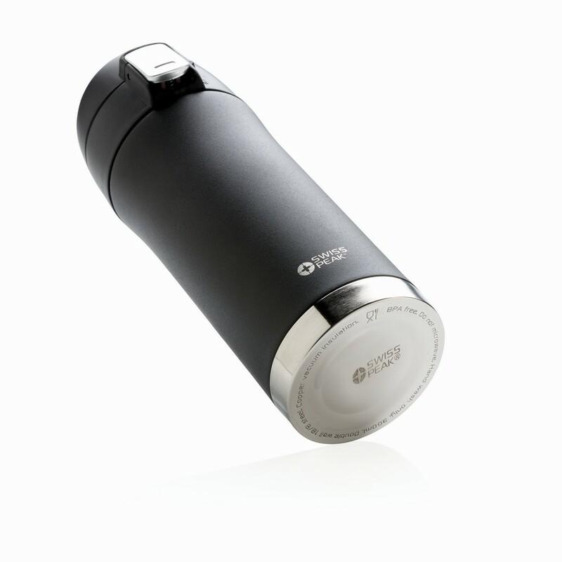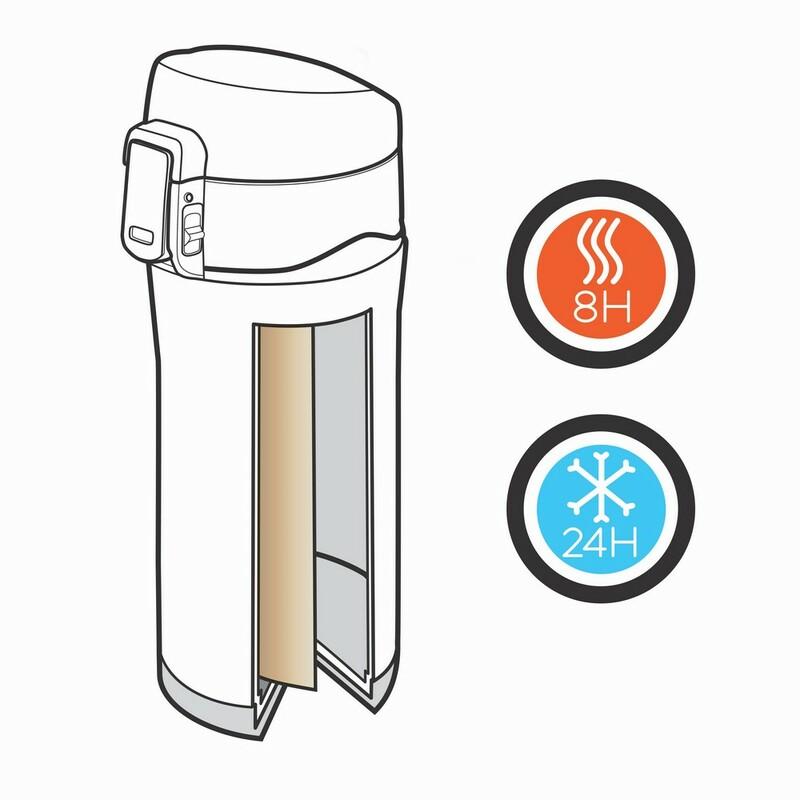 Kubek termiczny 300 ml, podwójne ścianki z próżnią między ściankami, wnętrze ze stali nierdzewnej 18/8, powlekany proszkowo czarny kolor cechujący się niezwykłą trwałością i odpornością na wyblaknięcie czy popękanie, ściana wewnętrzna pokryta miedzią o wysokim poziomie przewodnictwa, utrzymuje temperaturę napojów ciepłych do 8 godzin oraz zimnych do 24 godzin, szczelny, zamykane wieczko, wyłącznie mycie ręczne