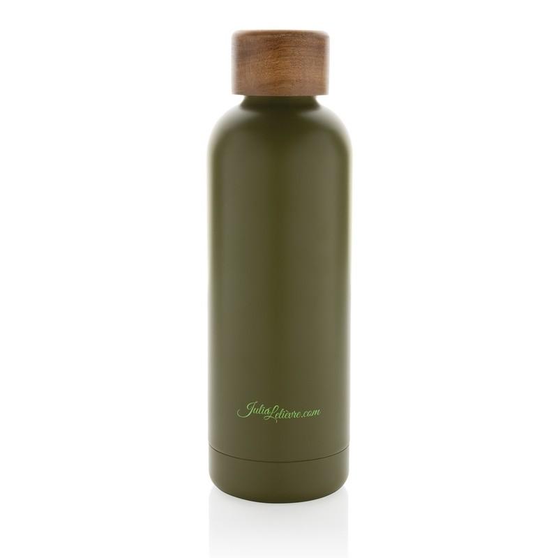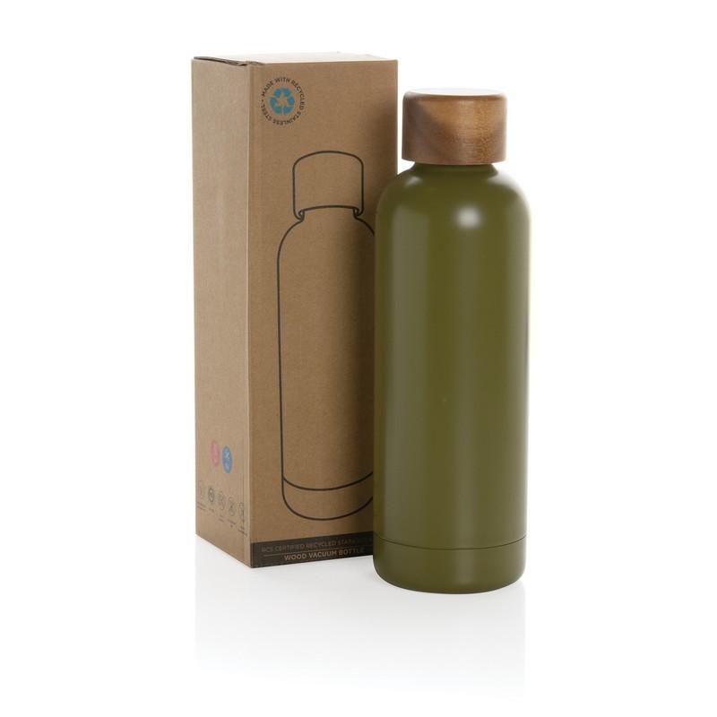 Butelka termiczna 500 ml, podwójne ścianki z próżnią pomiędzy, utrzymuje temperaturę napojów ciepłych do 5 godzin oraz zimnych do 15 godzin, wykonana ze stali nierdzewnej z recyklingu z certyfikatem RSC (Recycled Claim Standard) który gwarantuje, że wykorzystane materiały pochodzą z recyklingu, całkowita zawartość materiału z recyklingu obliczona w oparciu o wagę całkowitą przedmiotu: 88%, w pudełku z papieru kraftowego