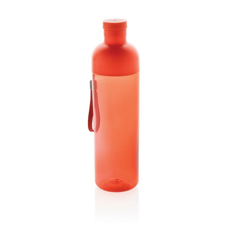 Butelka sportowa 600 ml, wykonana z materiałów z recyklingu, całkowita zawartość materiałów obliczona na podstawie wagi całkowitej przedmiotu: 96%, zalecana wyłącznie do zimnych napojów, wyłącznie mycie ręczne, w pudełku z papieru kraftowego z certyfikatem FSC®, 2% wpływów z każdego sprzedanego produktu z kolekcji Impact jest przekazywane na rzecz Water.org
