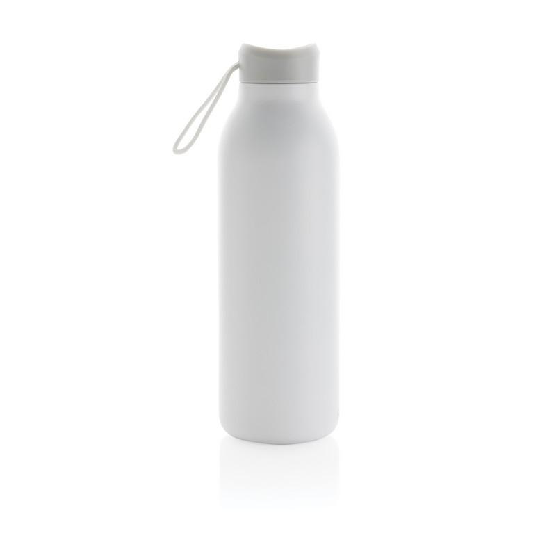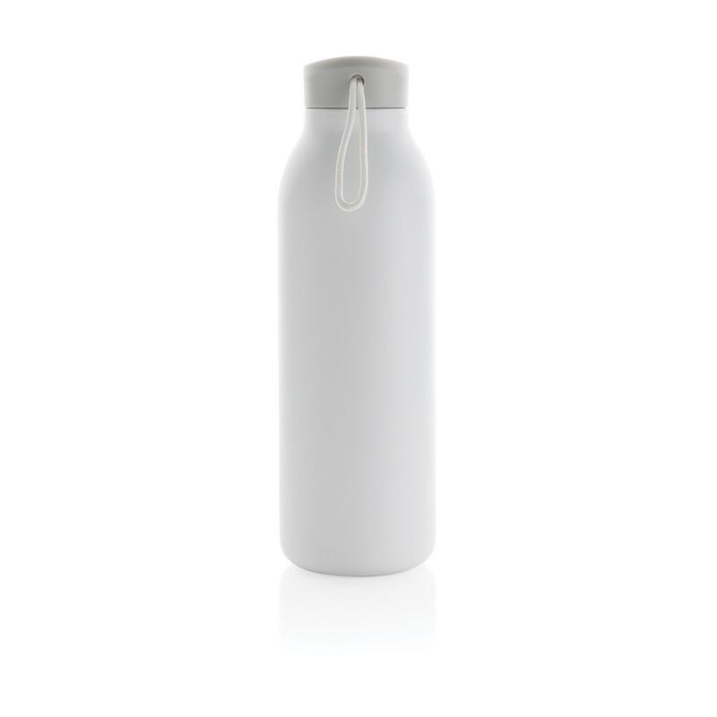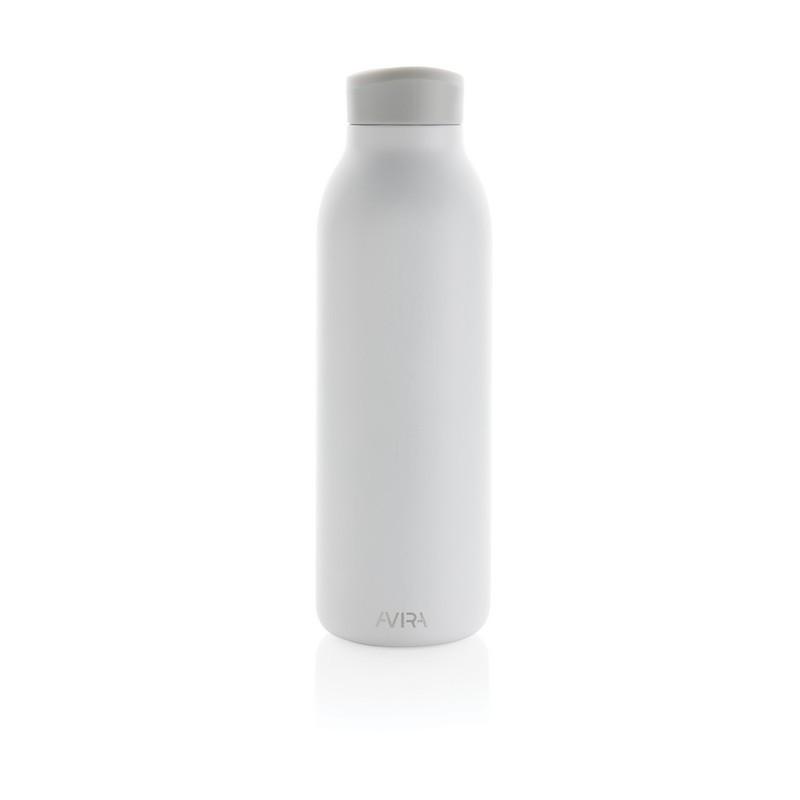 Butelka termiczna 500 ml, podwójne ścianki ze stali nierdzewnej z recyklingu z próżnią pomiędzy, zawartość materiałów z recyklingu obliczona na podstawie wagi całkowitej przedmiotu: 97%, utrzymuje temperaturę napojów ciepłych do 10 godzin oraz zimnych do 20 godzin, pasuje do większości uchwytów samochodowych, w pudełku z certyfikatem FSC®