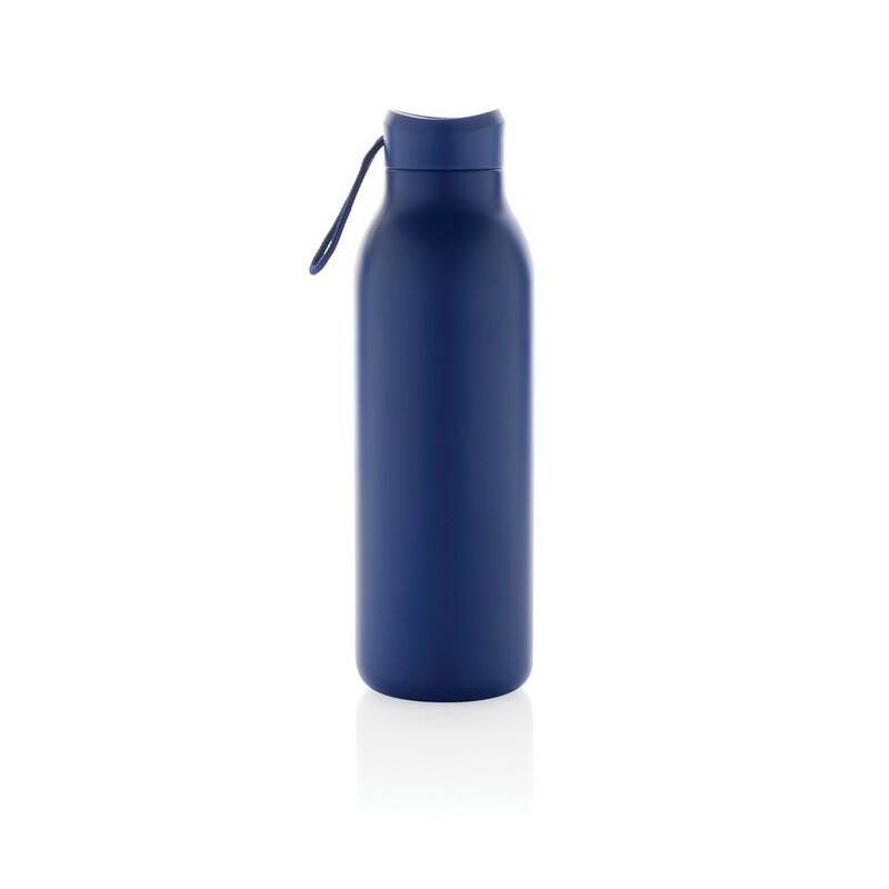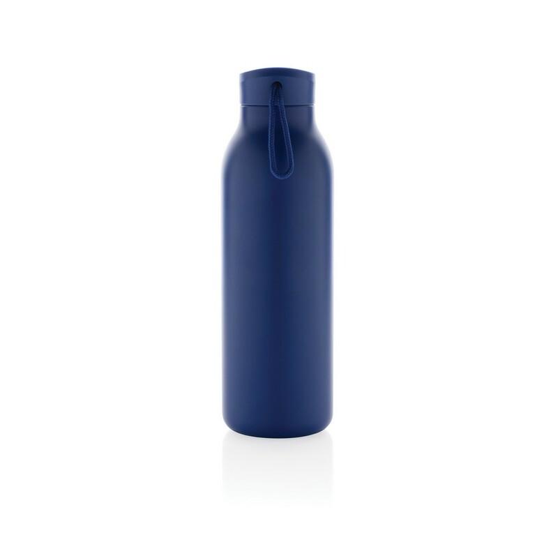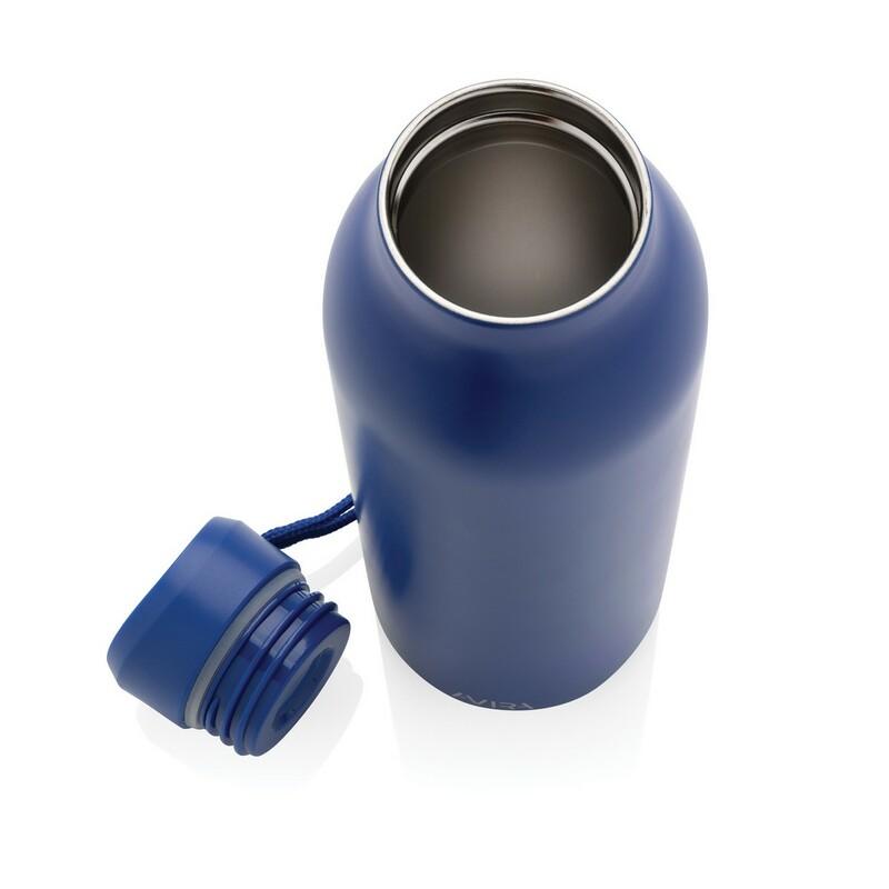 Butelka termiczna 500 ml, podwójne ścianki ze stali nierdzewnej z recyklingu z próżnią pomiędzy, zawartość materiałów z recyklingu obliczona na podstawie wagi całkowitej przedmiotu: 97%, utrzymuje temperaturę napojów ciepłych do 10 godzin oraz zimnych do 20 godzin, pasuje do większości uchwytów samochodowych, w pudełku z certyfikatem FSC®, ślad węglowy produktu: 1,35 kg CO2