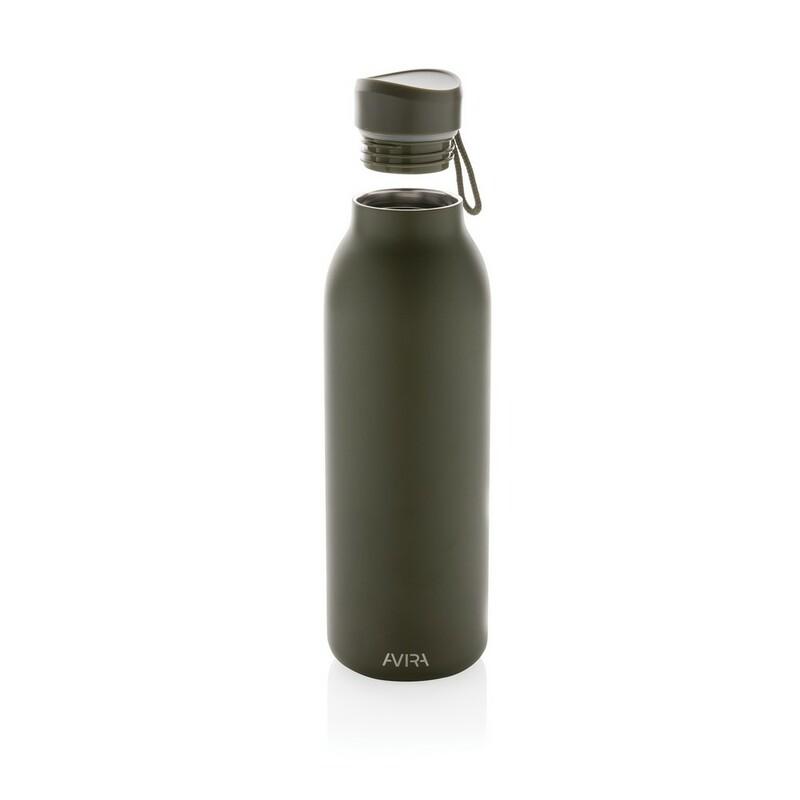 Butelka termiczna 500 ml, podwójne ścianki ze stali nierdzewnej z recyklingu z próżnią pomiędzy, zawartość materiałów z recyklingu obliczona na podstawie wagi całkowitej przedmiotu: 97%, utrzymuje temperaturę napojów ciepłych do 10 godzin oraz zimnych do 20 godzin, pasuje do większości uchwytów samochodowych, w pudełku z certyfikatem FSC®, ślad węglowy produktu: 1,35 kg CO2