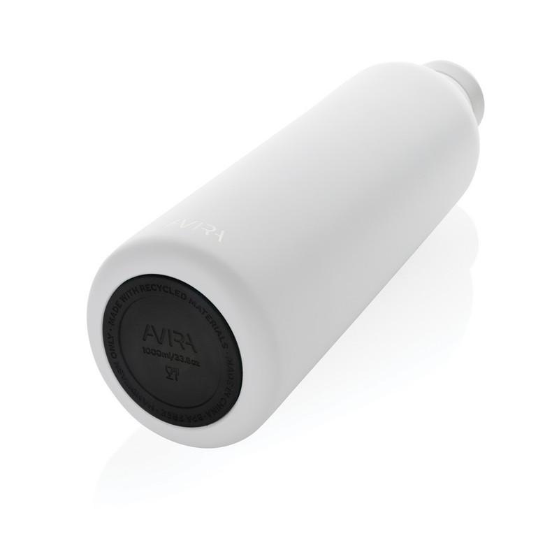 Butelka termiczna 1000 ml, wykonana ze stali nierdzewnej pochodzącej z recyklingu, całkowita zawartość materiałów z recyklingu obliczona na podstawie wagi całkowitej przedmiotu: 97%, podwójne ścianki z próżnią pomiędzy, utrzymuje temperaturę napojów ciepłych do 10 godzin oraz zimnych do 20 godzin, pasuje do większości uchwytów samochodowych, w pudełku z papieru kraftowego z certyfikatem FSC®, pudełko można wykorzystać jako stojak na telefon lub doniczkę