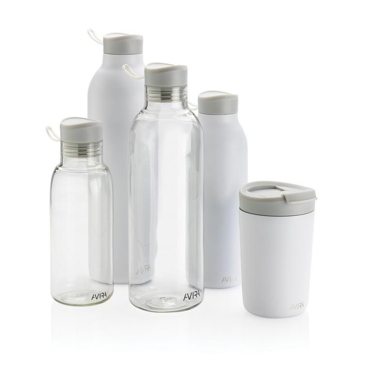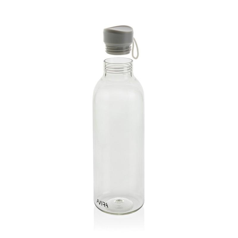 Butelka sportowa 1000 ml, wykonana z RPET z certyfikatem RCS oraz PP z recyklingu, całkowita zawartość materiałów z recyklingu obliczona na podstawie wagi całkowitej przedmiotu: 98%, w pudełku z papieru kraftowego z certyfikatem FSC®, pudełko można wykorzystać jako stojak na telefon lub doniczkę