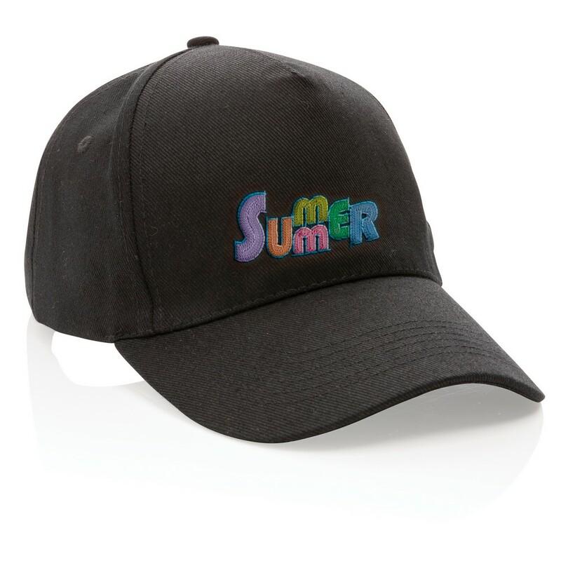 Czapka z daszkiem, 5 paneli, otwory wentylacyjne, metalowa klamra, wykonana z bawełny o gramaturze 280 g/m2 pochodzącej z recyklingu, dzięki czemu zaoszczędzonych zostało 387 litrów wody, dzięki zastosowaniu technologii AWARE™ wykorzystane włókna bawełny są identyfikowalne z pochodzenia, 2% wpływów z każdego sprzedanego produktu z kolekcji Impact jest przekazywane na rzecz Water.org