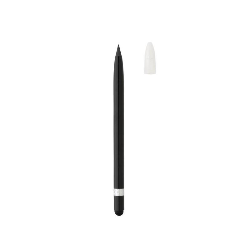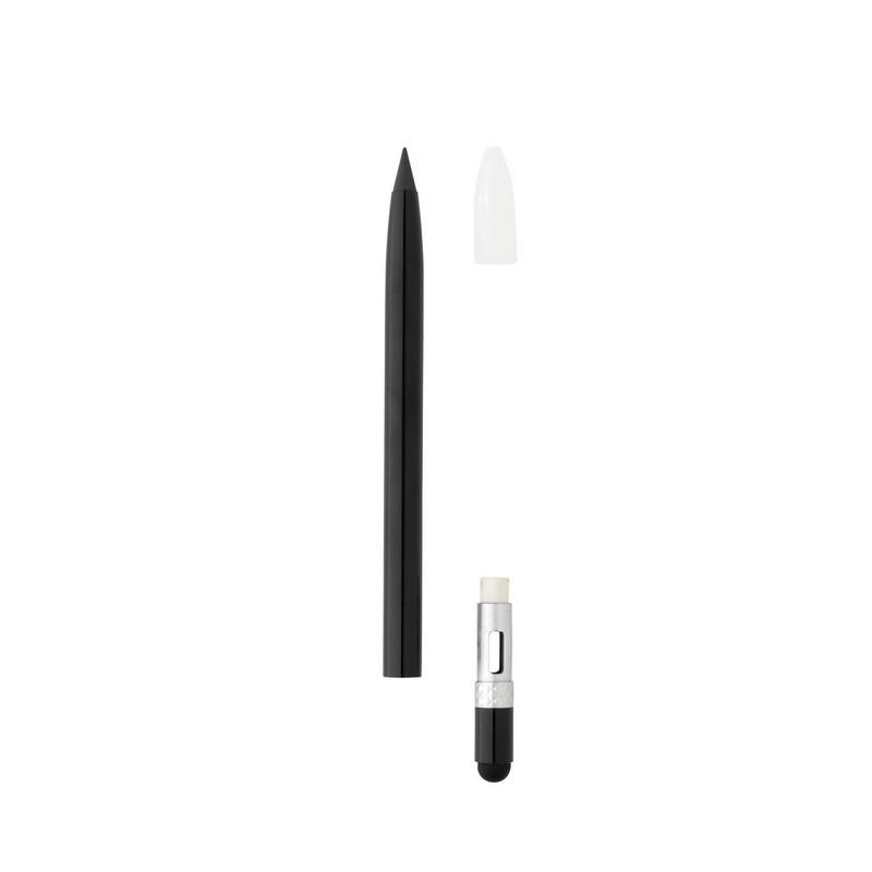 Ołówek z gumką, aluminiuowy trzon, dzięki wykorzystaniu specjalnej wolnościerającej się grafitowej końcówki długość pisania ołówka to około 20 000 metrów, notatki można zmazać standardową gumką do mazania