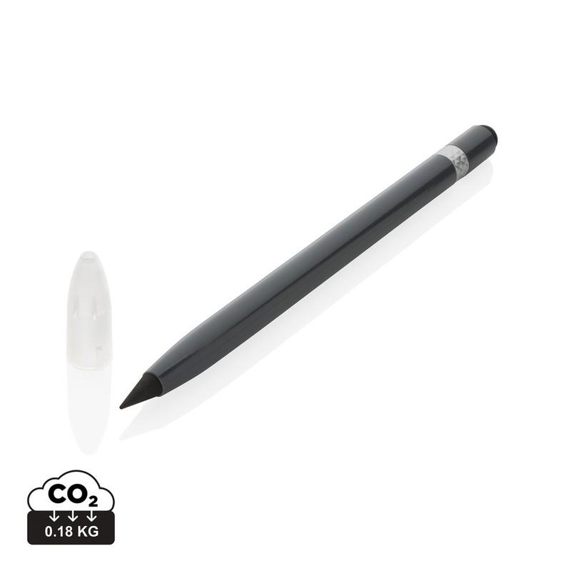 Ołówek z gumką, aluminiuowy trzon, dzięki wykorzystaniu specjalnej wolnościerającej się grafitowej końcówki długość pisania ołówka to około 20 000 metrów, notatki można zmazać standardową gumką do mazania