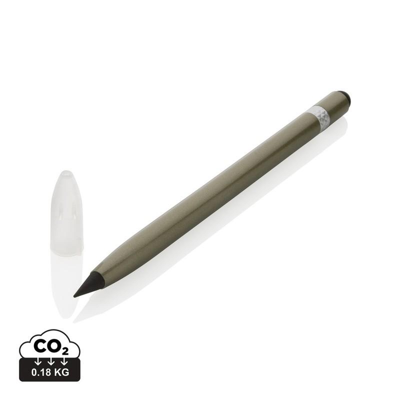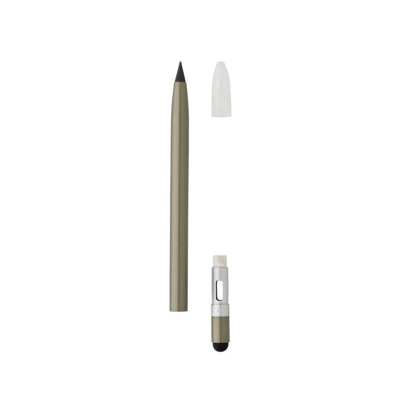 Ołówek z gumką, aluminiuowy trzon, dzięki wykorzystaniu specjalnej wolnościerającej się grafitowej końcówki długość pisania ołówka to około 20 000 metrów, notatki można zmazać standardową gumką do mazania