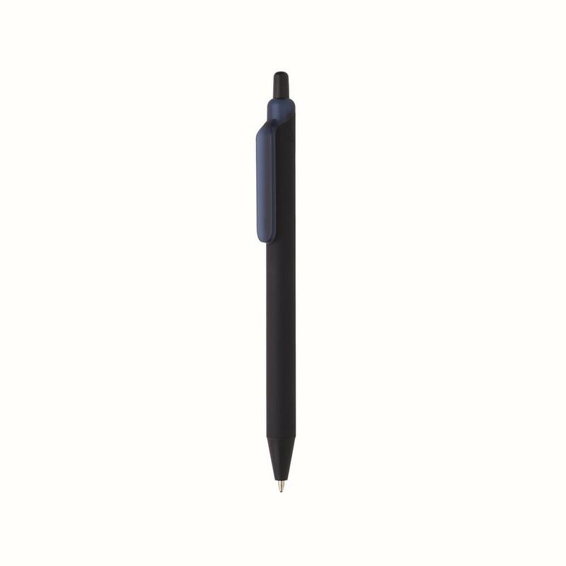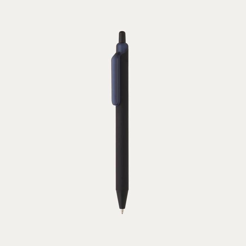 Długopis Tide RABS, wykonany w 91% z recyklingowanego ABS z certyfikatem GRS, gumowany uchwyt zapewniający wygodne pisanie, matowe wykończenie przycisku, klipsa i końcówki, niebieski wkład piszący do 1200 m, mechanizm przyciskowy.