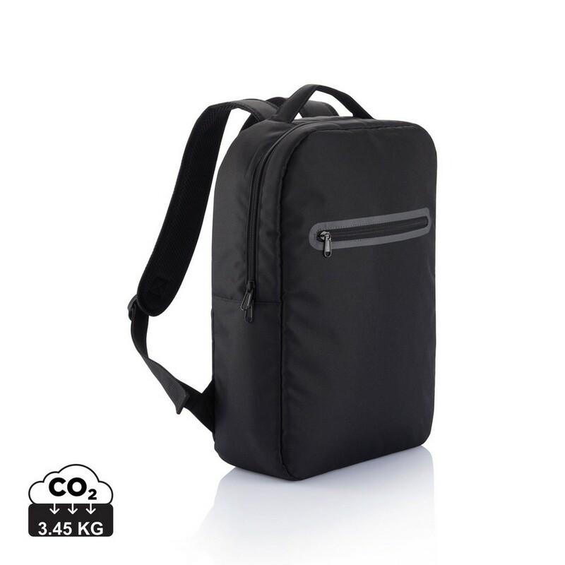 Plecak na laptopa 15,6", wykonany z poliestru 300D, 1 przegroda główna z kieszenią na tablet oraz organizer, nie zawiera PVC