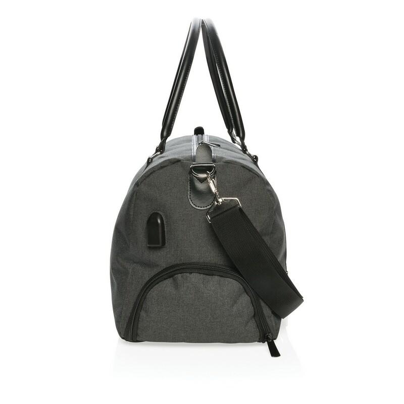 Weekendowa torba sportowa, podróżna, wykonana z poliestru 600D, uchwyty z PU, łatwo dostępna kieszeń, wygodny pasek na ramię, pojemna przegroda główna mieszcząca wszystkie niezbędne akcesoria, zintegrowane gniazdo USB do ładowania telefonów (power-bank nie jest dołączony), nie zawiera PVC