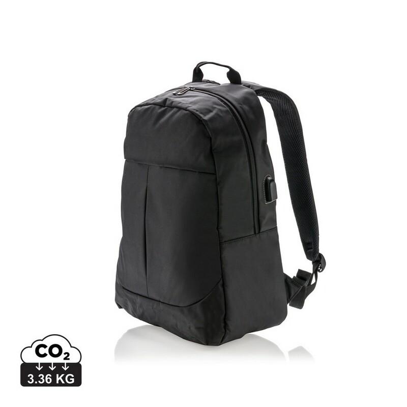 Plecak na laptopa 15", wykonany z poliestru 600D, posiada wyjście USB do ładowania (power-bank nie jest dołączony)