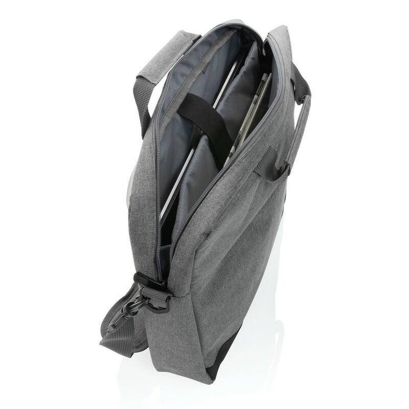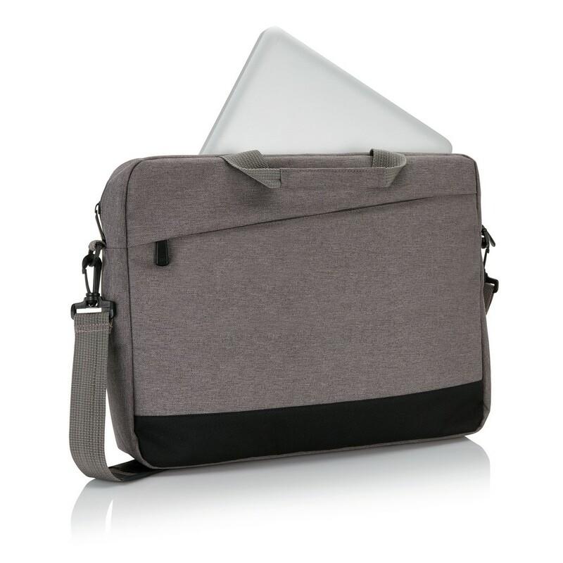 Torba na laptopa 15,6", wykonana z poliestru 600D, główna przegroda podzielona na dwie strony, przednia kieszeń na zamek błyskawiczny, nie zawiera PVC